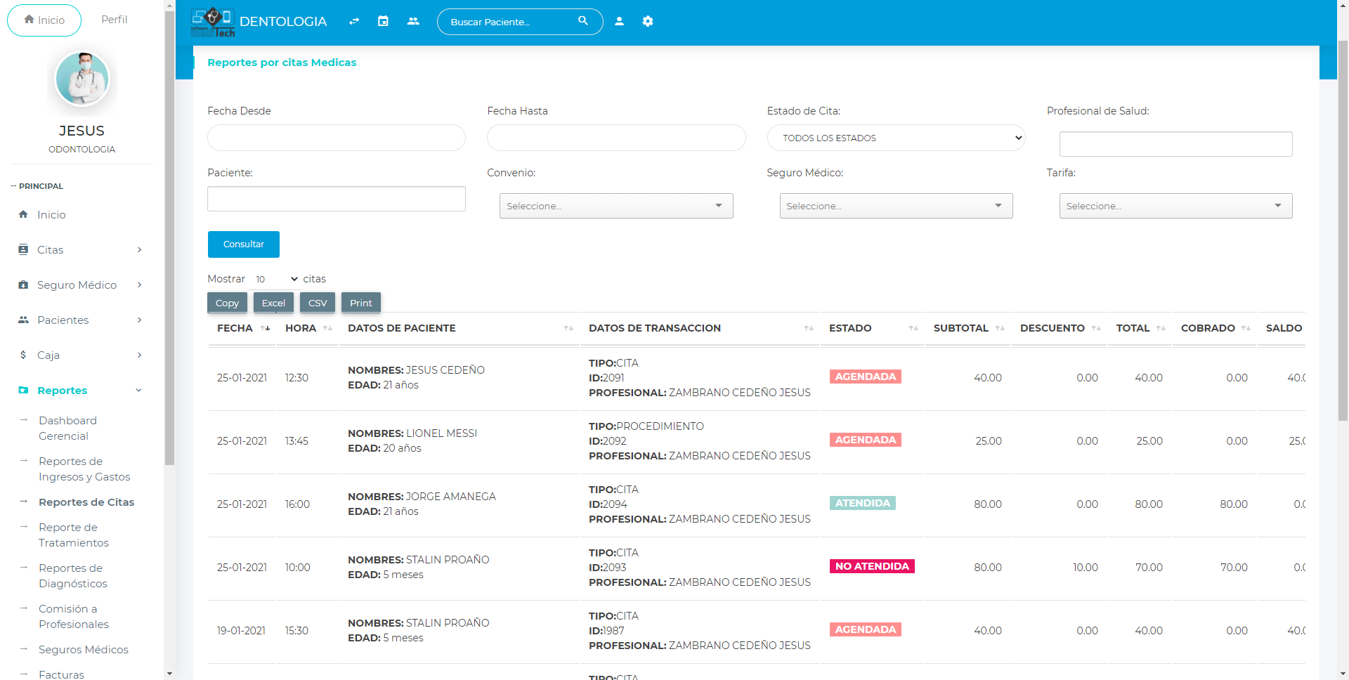 reportes, agendamiento, entre otras cosas… toda la información se guarda en el sistema y es muy fácil encontrarla, es