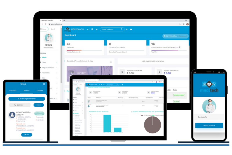 Gráficos que resumen la información, citas, pacientes, gráficos percentiles, historial de atención y más.
